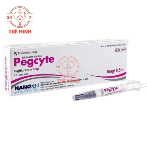 - Pegcyte là thuốc sinh học có chứa hoạt chất Pegfilgrastim, một dạng pegyl hóa của filgrastim (G-CSF tái tổ hợp), có tác dụng kích thích tủy xương tăng sản xuất bạch cầu trung tính (neutrophils). Thuốc được sử dụng nhằm giảm nguy cơ nhiễm trùng do giảm bạch cầu trung tính kéo dài ở bệnh nhân đang điều trị hóa trị liệu độc tế bào trong các bệnh lý ung thư không phải ung thư dòng máu. Với cơ chế tác dụng kéo dài nhờ công nghệ gắn PEG, Pegcyte chỉ cần tiêm một liều duy nhất sau mỗi chu kỳ hóa trị, mang lại hiệu quả bền vững, giảm thiểu tần suất tiêm và tăng sự tuân thủ điều trị ở bệnh nhân.